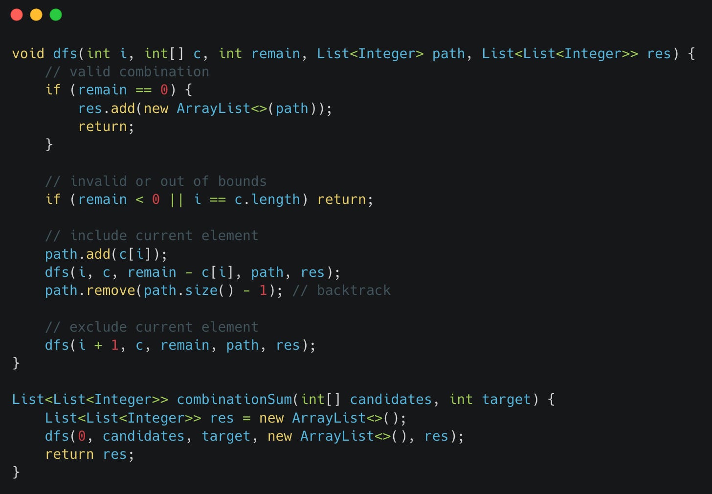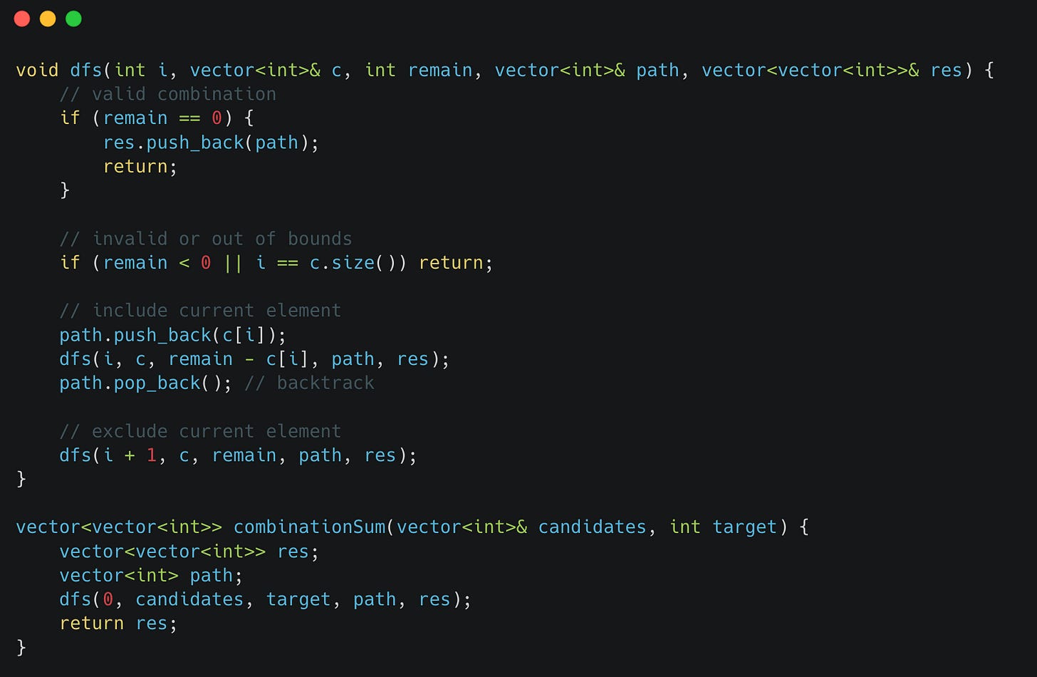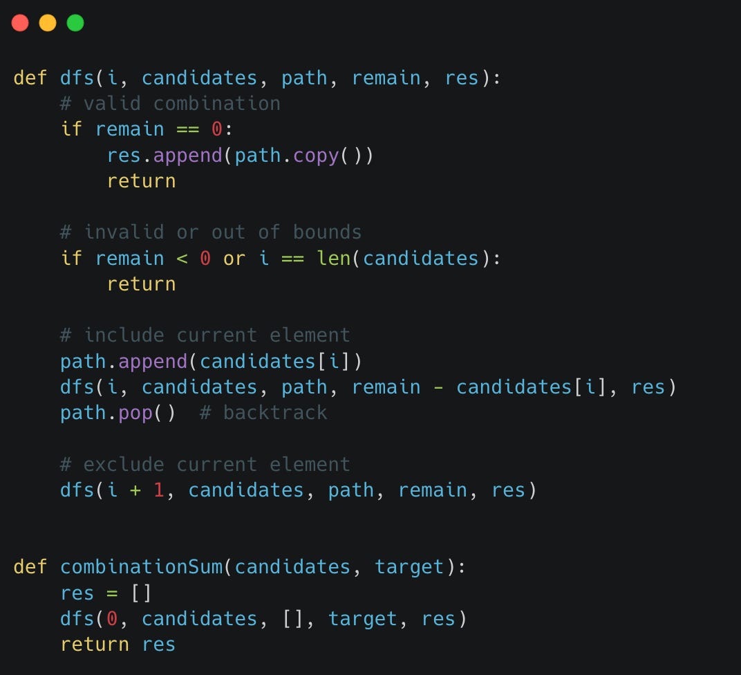 Note: The same number may be chosen from candidates an unlimited number of times. Two combinations are unique if the frequency of at least one of the chosen numbers is different.