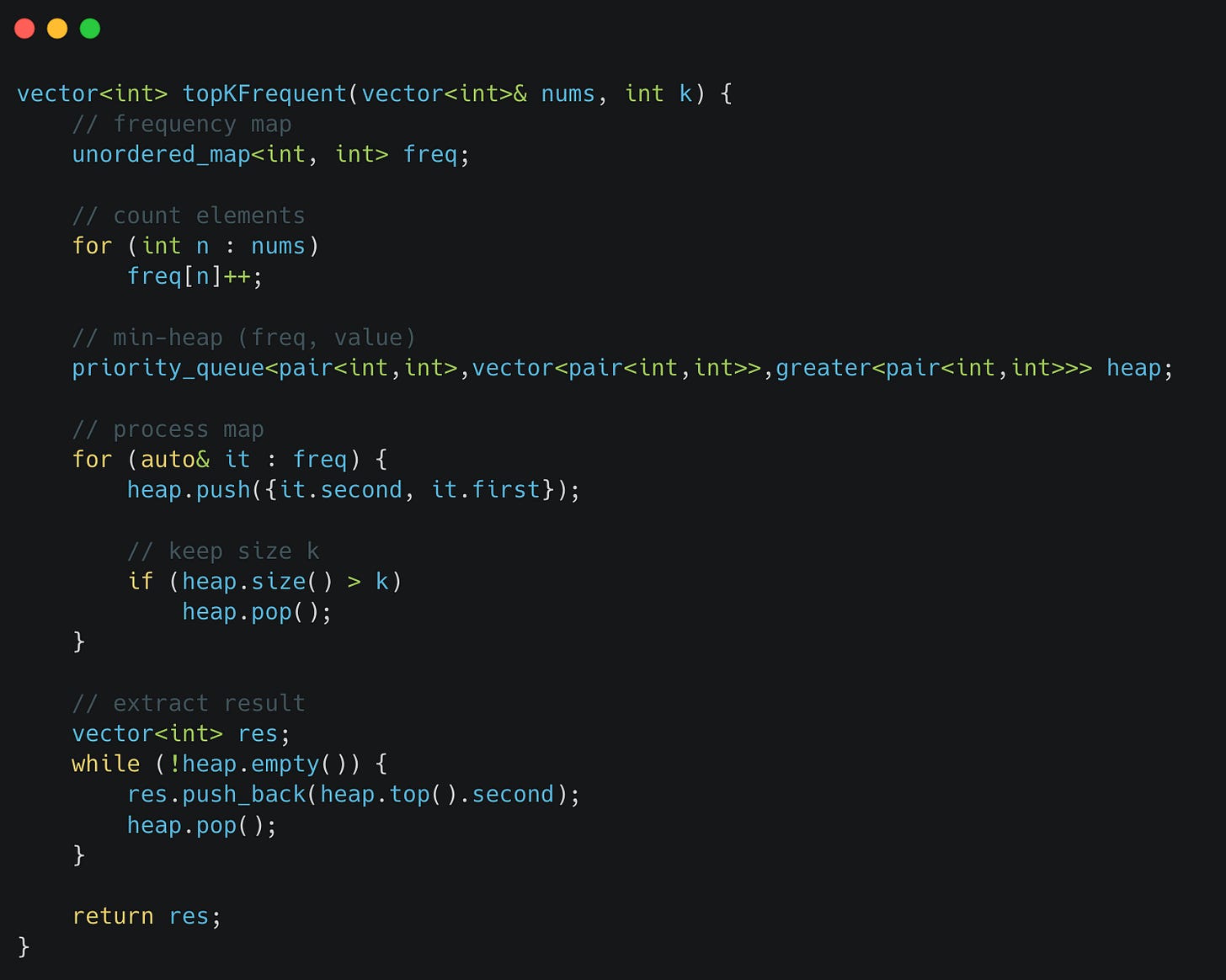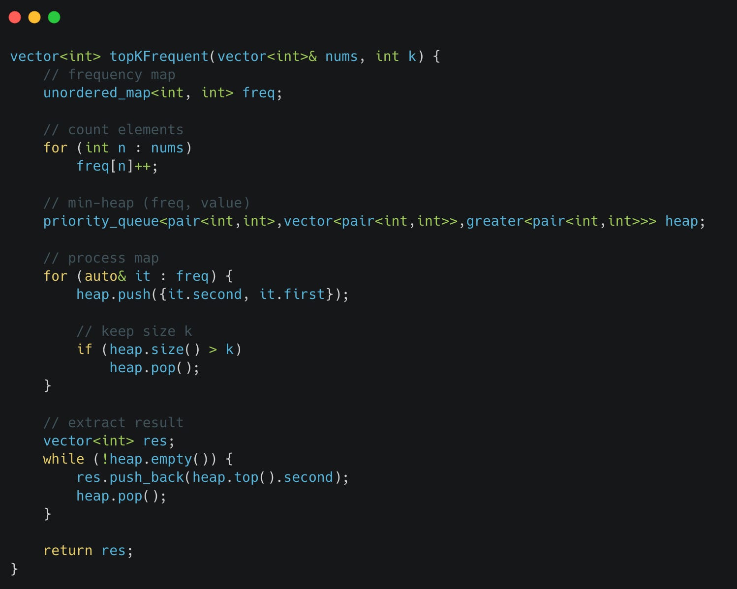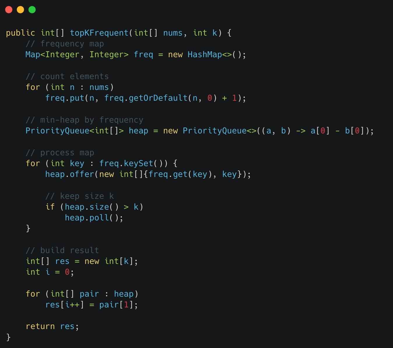 Given an integer array nums and an integer k, return the k most frequent elements.